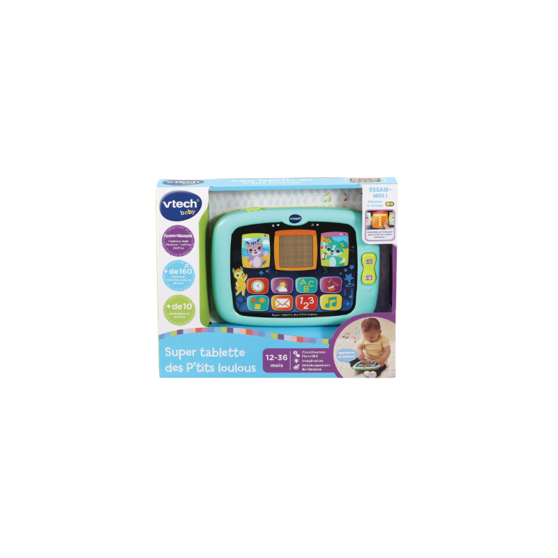 La SUPER TABLETTE DES P'TITS LOULOU est une tablette éducative conçue pour accompagner les enfants dans leurs premiers apprentissages de manière ludique et interactive. Avec ses jeux éducatifs variés et ses fonctionnalités intuitives, elle stimule la curiosité, la créativité et le développement cognitif des plus petits.