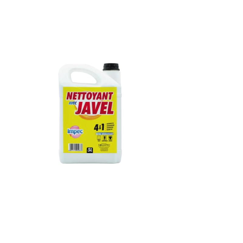 un produit puissant et polyvalent conçu pour nettoyer, désinfecter et blanchir efficacement les surfaces, éliminant bactéries, taches et mauvaises odeurs grâce à l’action de la javel, tout en garantissant une hygiène irréprochable et un format économique idéal pour un usage domestique intensif ou professionnel