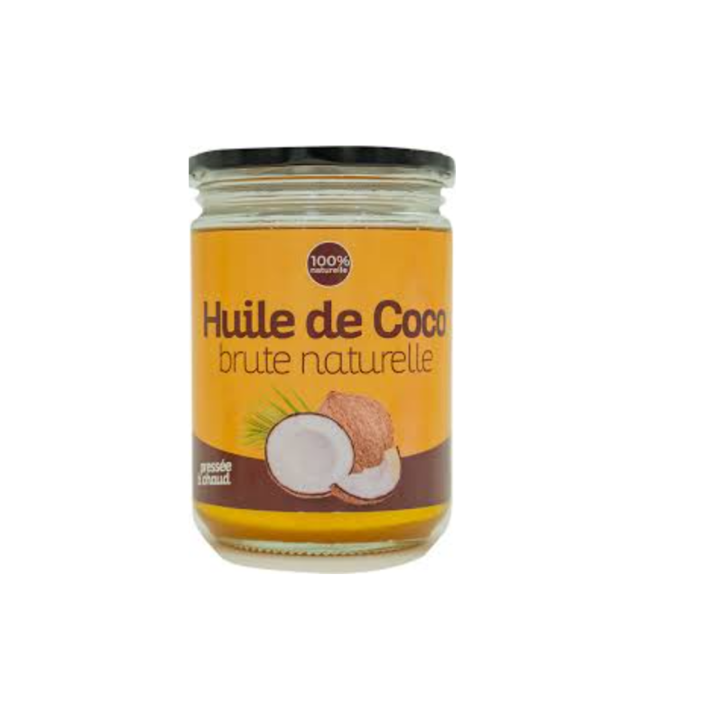 Huile de coco brute naturelle, extraite de la chair fraîche de noix de coco, non raffinée et sans additifs, idéale pour la cuisine, la pâtisserie et les usages cosmétiques grâce à son arôme authentique et ses propriétés nourrissantes