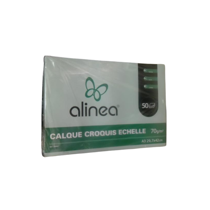 Format : A3 50 feuilles; Grammage : 90?g/m², très transparent; Surface : satinée (extra-lisse), idéale pour traits précis; Compatibilité : encre, crayon, feutre, photocopie; Couverture quadrillée : pour croquis à l'échelle ou en perspective; Utilisation : dessin technique, layout, esquisse artistique; Avantages : effaçable proprement, résistant au grattage, pH neutre (ne jaunit pas)