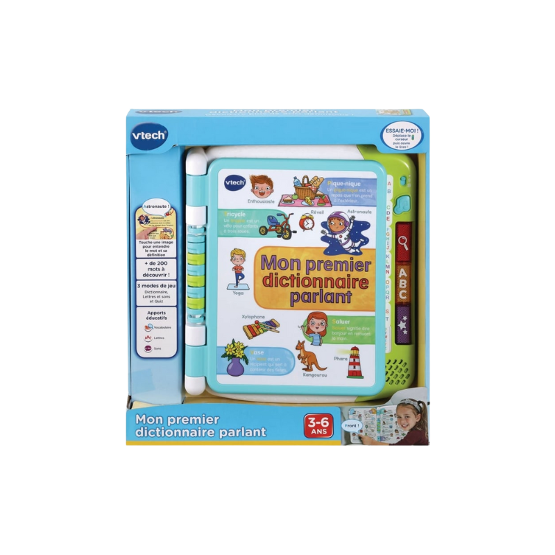 Mon Premier Dictionnaire Parlant aide les enfants à découvrir les mots et leur prononciation de manière ludique et interactive. Grâce à ses fonctions sonores et à ses illustrations colorées, il stimule le langage, la mémoire et la curiosité tout en rendant l'apprentissage amusant.
