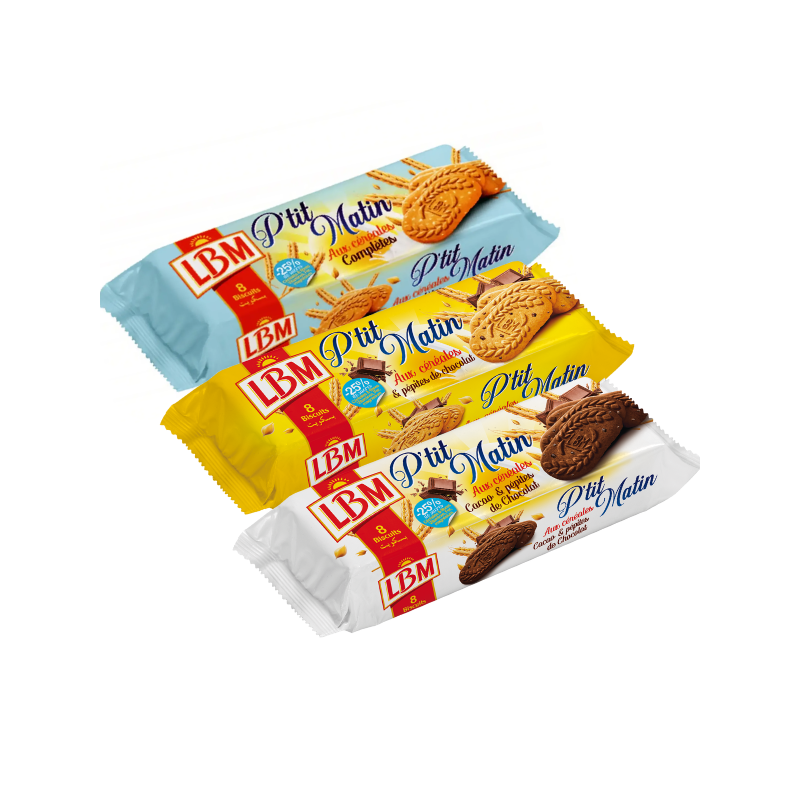 Découvrez les biscuits PETIT MATIN aux céréales, délicatement enrichis en pépites de chocolat, disponibles en plusieurs déclinaisons gourmandes : céréales classiques, multi-céréales, céréales complètes, chocolat au lait ou chocolat noir.