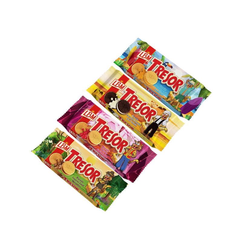 TRESOR BISCUIT FOURRÉ DISPONIBLE EN GOÛT FRAISE, CHOCOLAT, NOISETTE, VANILLE ET EXOTIQUE, ETC.