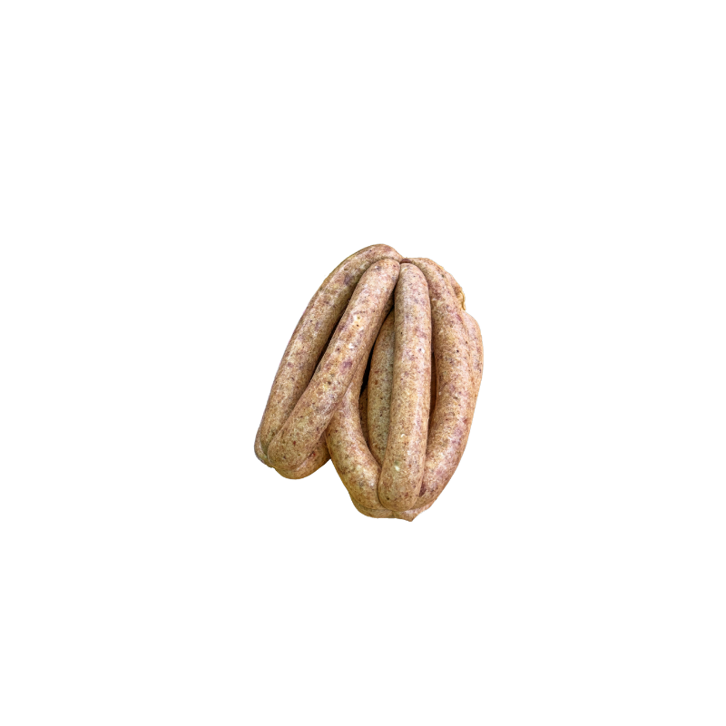 Un mélange de canard et de poulet, subtilement assaisonné avec un mélange de poivres et d’ail.