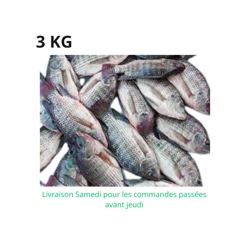 Tilapia Frais. Origine : Elevage en pisciculture - qualité sélectionnée. Conservation : Transporté sous glace pour une fraîcheur garantie. Poids moyen : 200g par poisson. *** Livraison Samedi pour les commandes passées avant jeudi ***